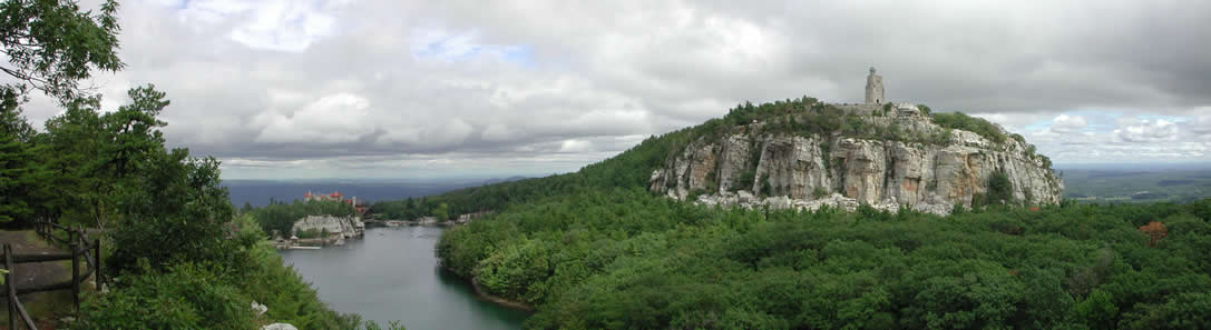 View of Mohonk Mountain House from Eagle's Glen, Lake Mohonk, NY